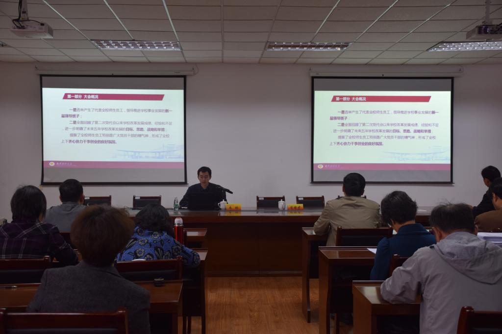 全体教职员工作了“学习贯彻校第三次党代会精神”专题报告。飞速体育