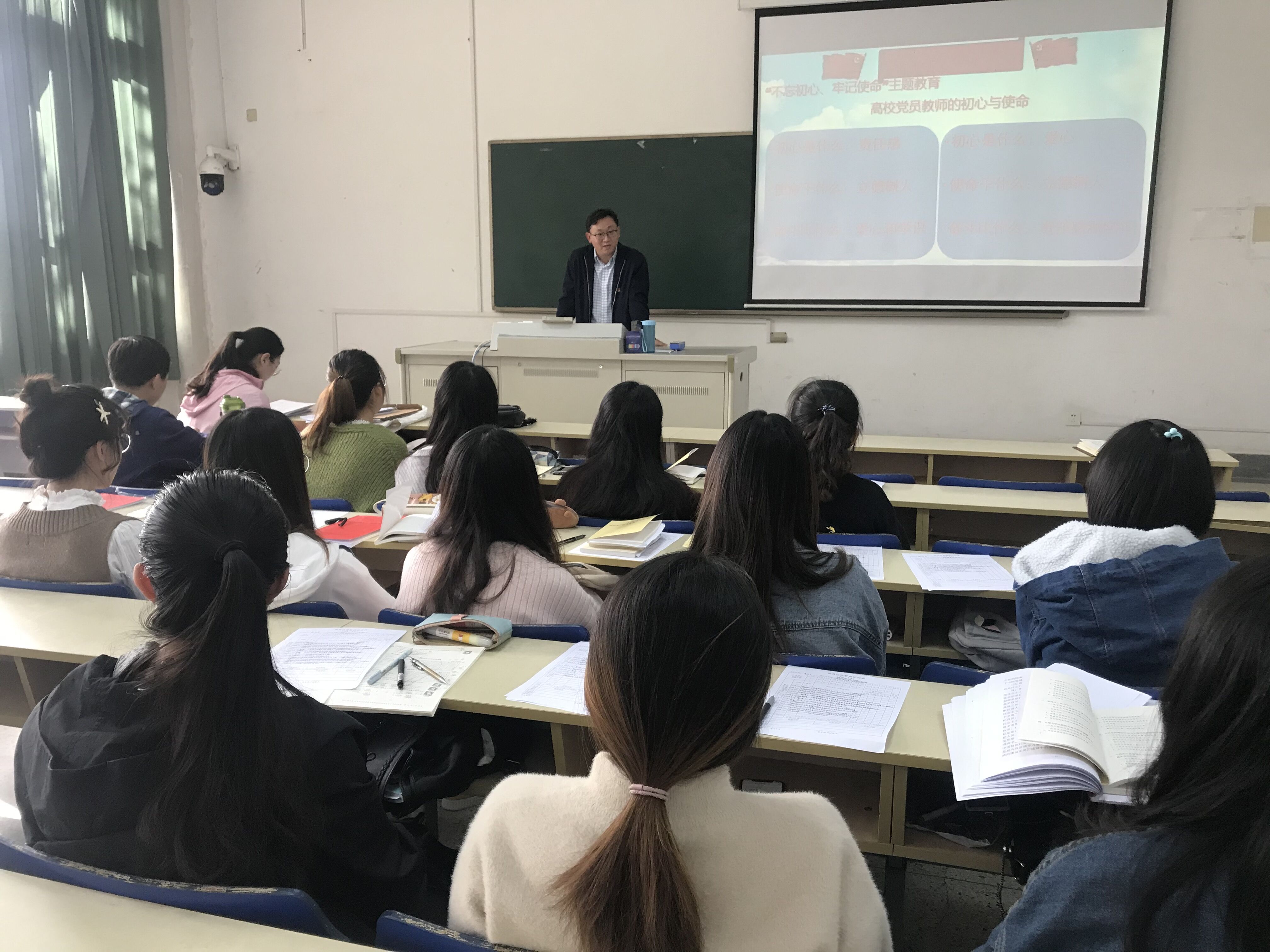 秦伟平老师从教师的角度出发,用亲身经历与感受为全体学生党员讲诉高校党员教师的初心与使命,强调初心是责任感、使命是立德树人、奋斗比爱心和学识。此次活动的开展,支部全体党员结合贴近学、对标学、交流学,深刻意识到不仅要学习秦伟平老师的奉献精神和初心精神,也应该学会用这种精神去激励、启发自己的服务意识和先进意识,感悟使命担当。