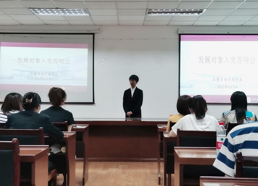 答辩伊始,答辩候选人依次进行自我陈述。每位候选人主要根据入党动机、个人经历以及志愿活动等方面展开陈述,同时结合个人的学习、生活及实践活动,对自己的表现进行总结和反思。随后,在场老师对每位候选人进行提问,对参加答辩的发展对象进行全面的了解和考察,确保发展党员质量。