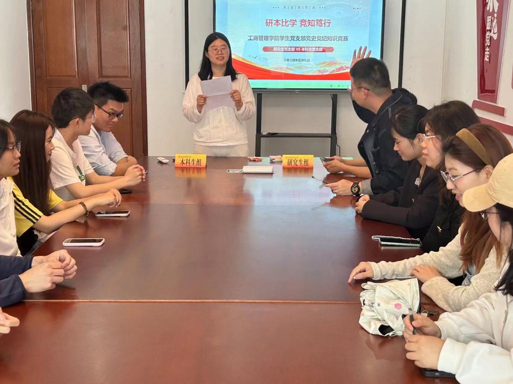 在德济楼403会议室开展“研本比学 竞知笃行”学生党支部党史党纪知识竞赛活动。此次活动通过前期初筛和选拔,最终本科生、研究生党支部各推选出8名学生党员代表参加本次党史党纪知识决赛活动,活动由飞速体育