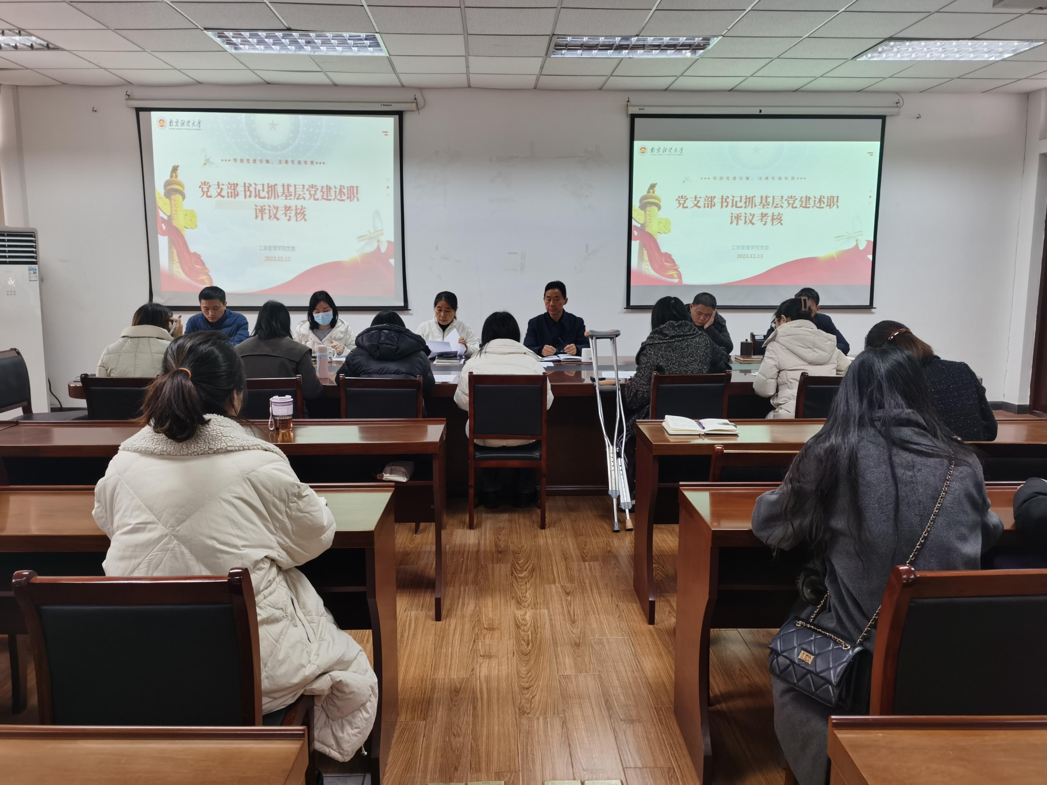 最后,学院党委委员对于6名基层党支部书记一年来的工作进行了认真考核评议。