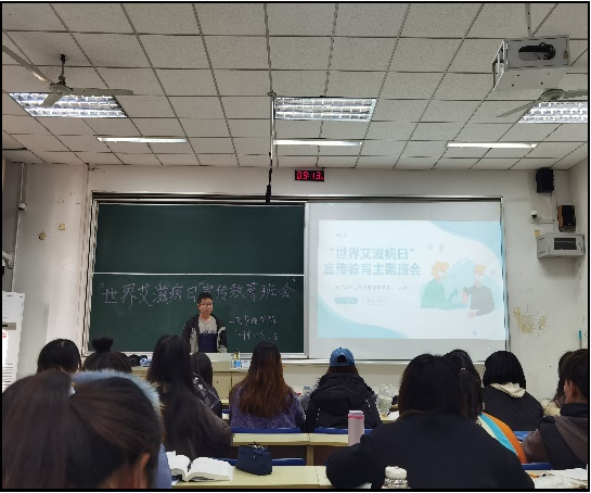 主题班会利用中国疾病预防控制中心健康教育资料库、中国疾病预防控制中心性病艾滋病预防控制中心的公众号和健康传播与服务平台、人民卫生出版社、卫士公众号等宣传平台中的素材,以及国家卫生健康委组织制作的“世界艾滋病日”主题海报开展宣传教育活动。主题班会上,主持人结合丰富的图片、详实的文字说明以及生动形象的宣传视频,向同学们系统介绍了艾滋病的起源发展、感染表现、传播途径、如何正确对待艾滋病人、如何接受健康的性教育、如何远离艾滋、健康生活等相关知识。