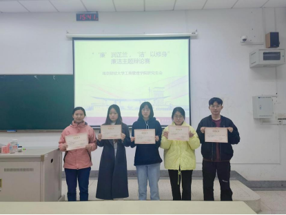 在德经楼105教室顺利举办了“‘廉’润芷兰,‘洁’以修身”廉洁主题研究生专场辩论赛。辩论赛以“司法和媒体对官员的监督,谁更重要?”为辩题,辩论双方在开篇立论、攻辩阶段、自由辩论和总结陈词各项环节中引经据典、妙语连珠,面对一些复杂问题的巧妙回答引得场上喝彩连连。最终,凭借团队成员之间的出色配合,王莉、王婷、王承宇、董卓冉组成的反方辩队获得了此次辩论赛的胜利,正方二辩李欣苒凭借个人的优秀表现,荣获“最佳辩手”称号。辩论赛展示了工商管理学子的思辨风采,同时加深了学生对廉洁含义的认识和理解。