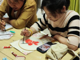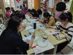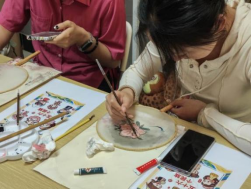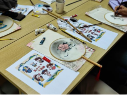 活动伊始,赵雪老师首先对活动的内容进行介绍,指导同学们根据各自的民族特色,将不同民族的服饰花纹或标志,通过画、描、涂的方式,绘制在团扇上,形成一幅幅精美的作品。同学们积极参与其中,围绕着“青年话民俗,共绘同心圆”的主题在团扇上描绘出多样的民族样式,有白族、苗族的特色服饰花纹,有维吾尔族的石榴花……这些独具特色的团扇画作,不仅表现出了少数民族学子对传统文化的浓厚兴趣,更突显了各民族团结一心的深厚友谊。