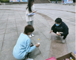 展架前,设置了“友谊徽章”展览。学院承办的巧接乒乓球、你画我猜等互动游戏环节,让同学们在游戏的过程中放松身心,建立彼此联结,传递温暖。