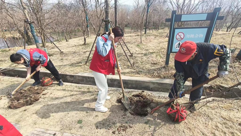 3月12日上午,志愿者们在负责人的带领下来到桦墅村。在工作人员的指导下,志愿者们分组行动,手持铁锹,挖坑挖土、扛苗散苗、摆正树苗、培土浇水……每一道工序都充满着热情与汗水。大家肩并肩、心连心,用实际行动诠释了对自然的尊重以及对未来的期待。多棵幼苗在同学们的共同努力下稳稳地扎根土壤,同学们在感受春天万物复苏的同时,绿色发展的理念也在心中拔节生长,深刻认识到保护生态环境的重要性,并表示要从自己做起,为绿色发展贡献自己的力量。