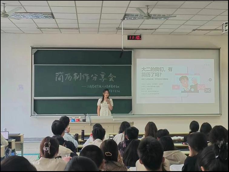 在德济楼114教室举办了一场别开生面的“大二的我们,有简历了吗?”简历制作分享活动。专业教师曹倩、辅导员邱祥霞以及人力资源管理专业2022级全体同学参加了此次活动。本次活动由人资2202班班长陈嘉怡主持。