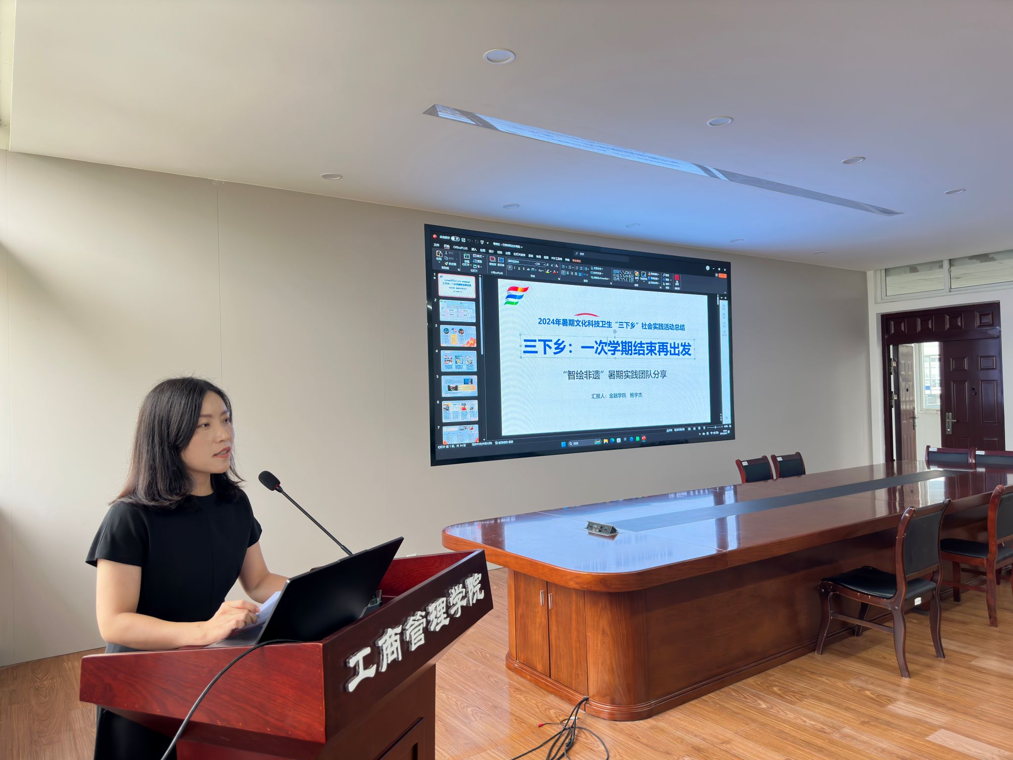 活动伊始,院学生会主席顾梓骞从人员投入、工作安排、宣传成果等方面对本年度暑期社会实践工作进行了系统的总结,向同学们展示了暑期社会实践的优秀成果。院团委书记赵雪老师分别宣读了院优秀团队、优秀调研报告、先进个人和优秀通讯员等获奖名单。暑期社会实践优秀团队代表段沛妤、顾晨和号境在三位同学进行了实践经验分享。其中,段沛妤带领的“德昂光影探秘者”调研团队前往云南省德宏州出冬瓜村进行实地调研,深入探索农文旅融合的旅游新兴产业发展模式,促进文化传承、民族团结、乡村振兴;顾晨带领的“良‘源’广进,‘兴新’向荣”调研团队通过与企业负责人面对面交流,探索创业项目的融资发生机制,进而对政府的政策制定和创业者的创业及获取融资路径方面提出对策建议;号境在带领的“智绘非遗”暑期社会实践团队,通过探索非遗文化保护传承与开发利用的有机融合路径,聚焦旅游智慧科技和数字智慧营销,实现文化资源最大化利用与区域经济协同发展。