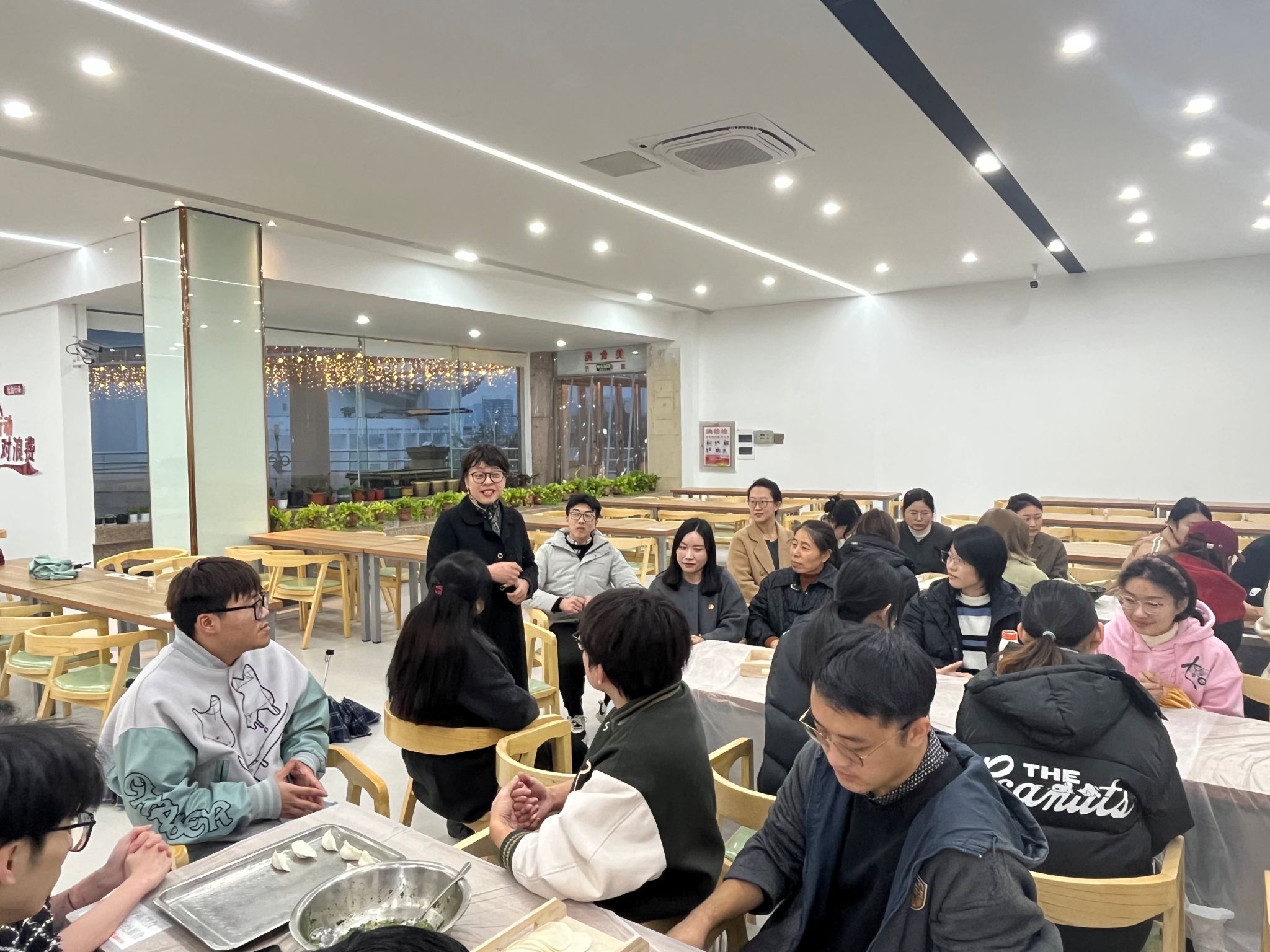 包饺子过程中,师生们分工明确,配合默契。大家一边包着饺子,一边分享着生活中的趣事和学习工作的经验,食堂里充满了欢声笑语,热闹非凡。