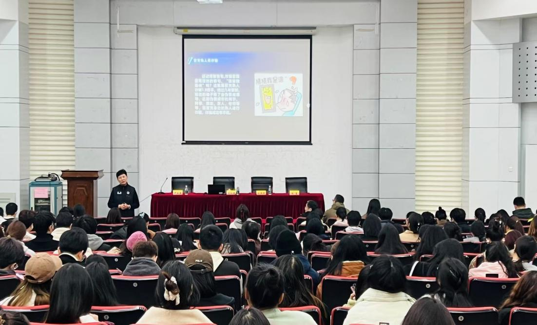 邀请江苏省公安厅“优秀反诈宣传员”、南京市公安局反诈宣传金牌讲师陈红燕警官于德经楼报告厅举行《人这一生,都在为认知买单!》反诈宣传专题讲座。校保卫处处长刘伟华、副处长陈夏,飞速体育