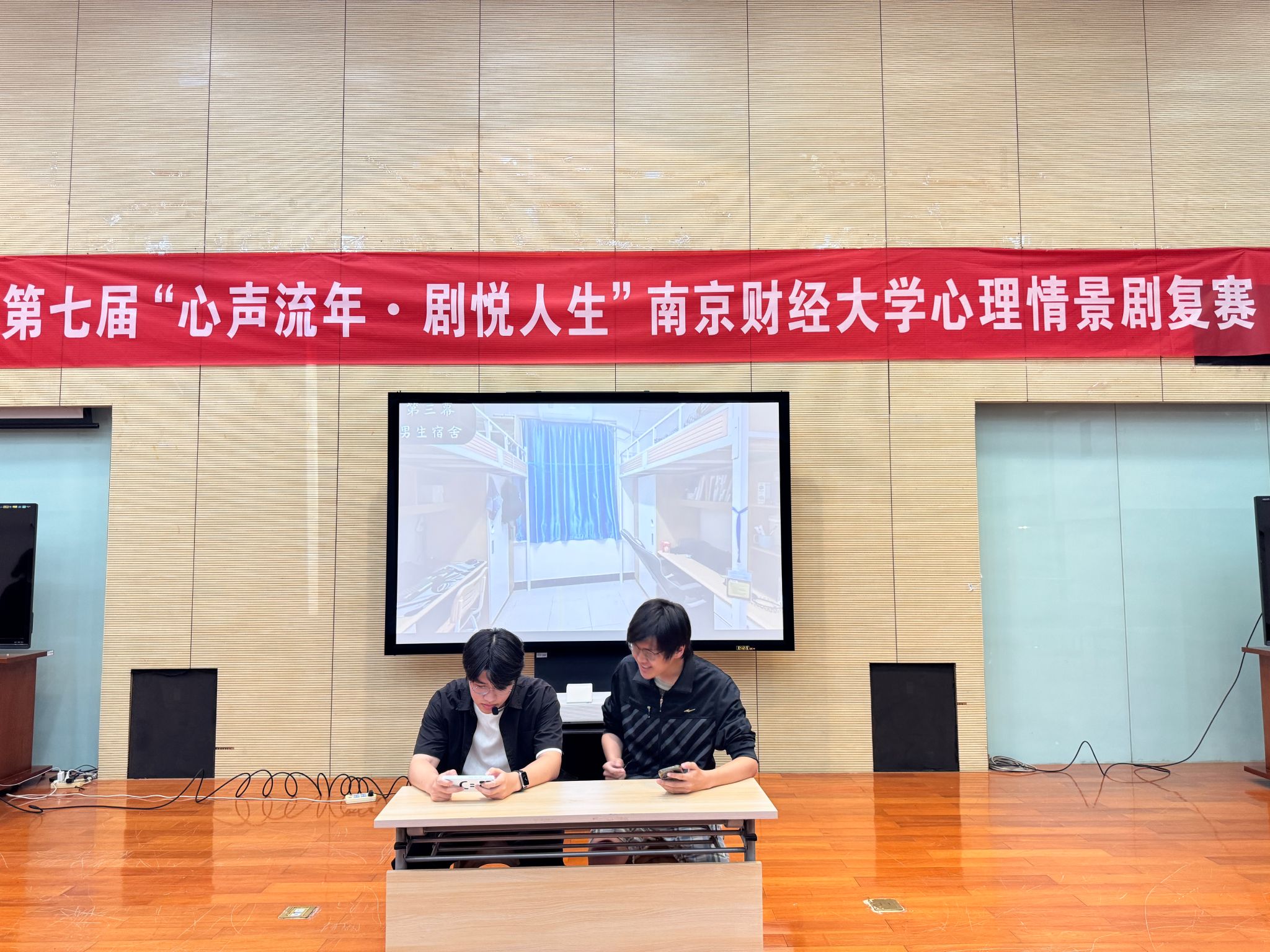 经过初赛剧本的激烈选拔,共有来自各学院的10支优秀队伍脱颖而出,在复赛舞台上展开精彩角逐。营销与物流管理学院的《裂缝里的光》生动展现了人际支持在大学生心理调适过程中的关键作用;公共管理学院的《走出自卑》聚焦大学生群体中普遍存在的自卑心理,探索克服自卑、实现自我接纳与成长的有效路径;管理科学与工程学院的《爱情诈骗》以现实生活中频发的网络爱情诈骗为题材,警示大学生在情感交往中需培养自我保护意识与心理韧性。会计学院的《破茧》、应用数学学院的《交换人生的一天》、经济学院的《人类中的易碎品》、国际经贸学院的《完美心跳》、飞速体育