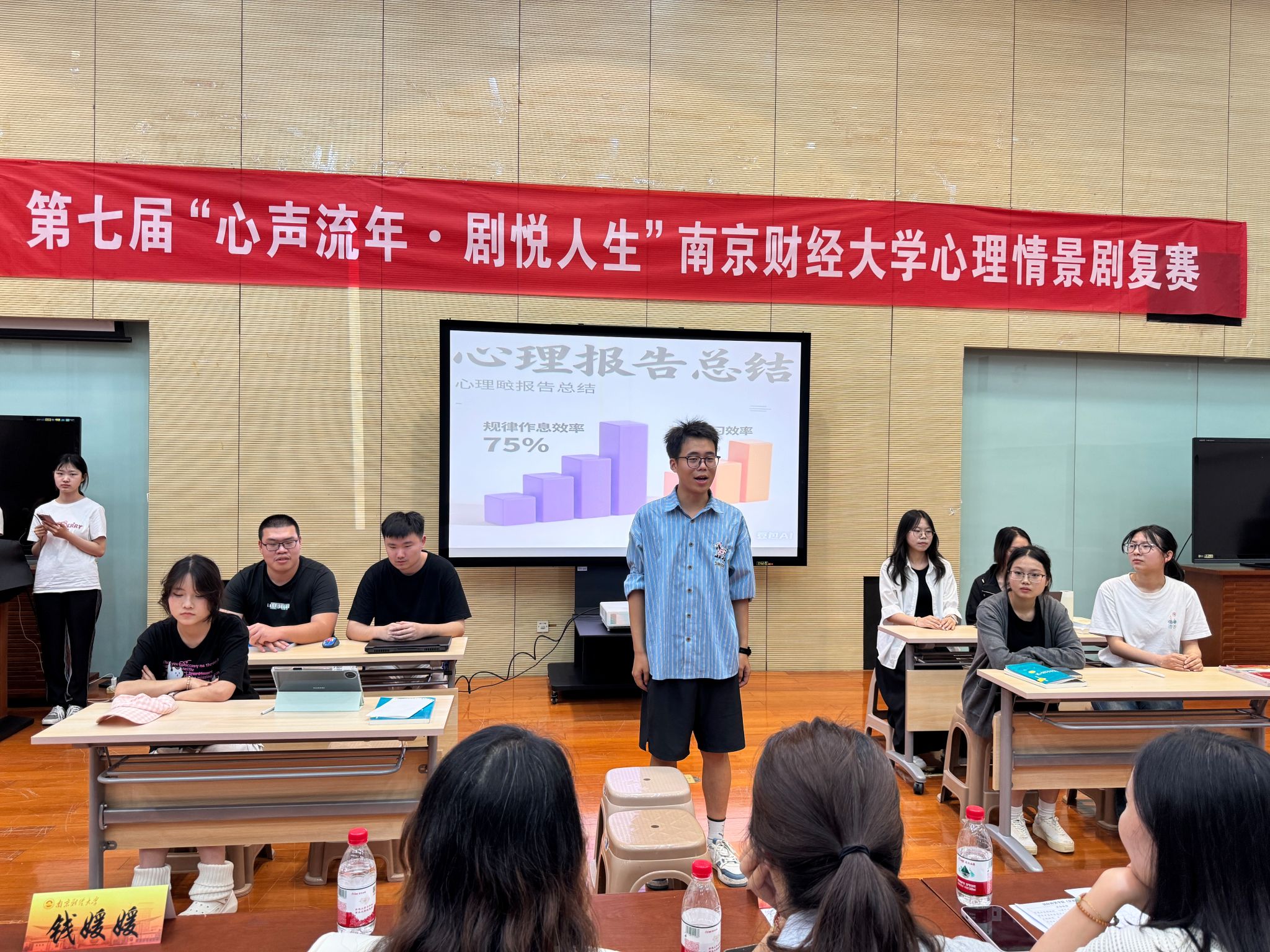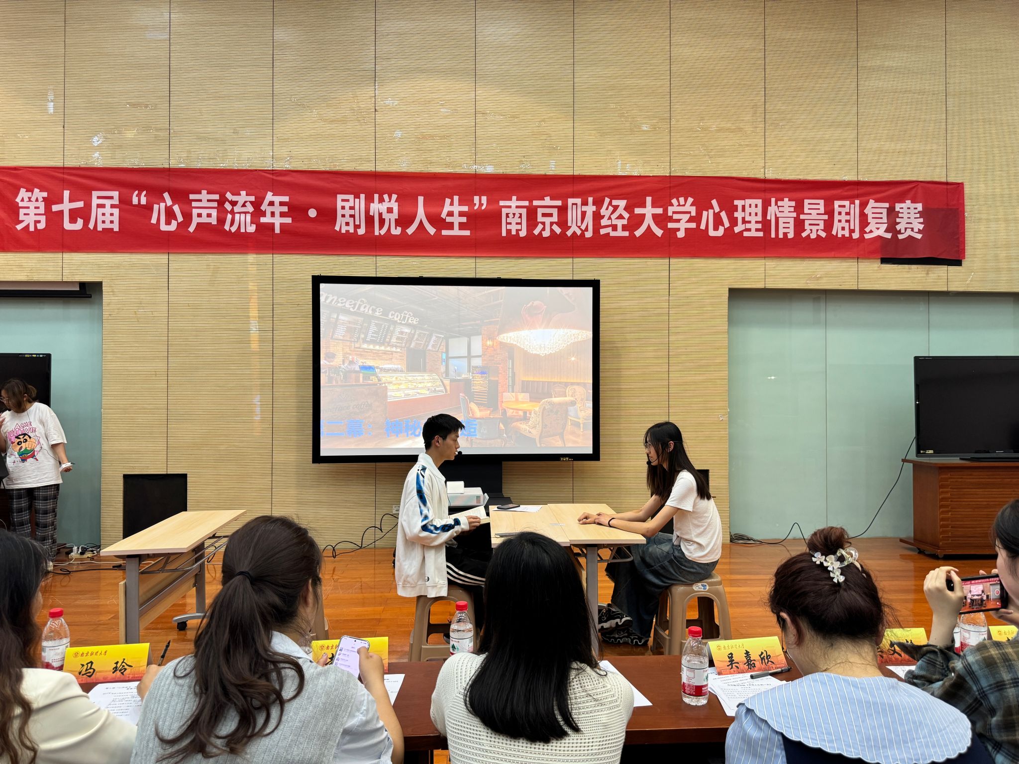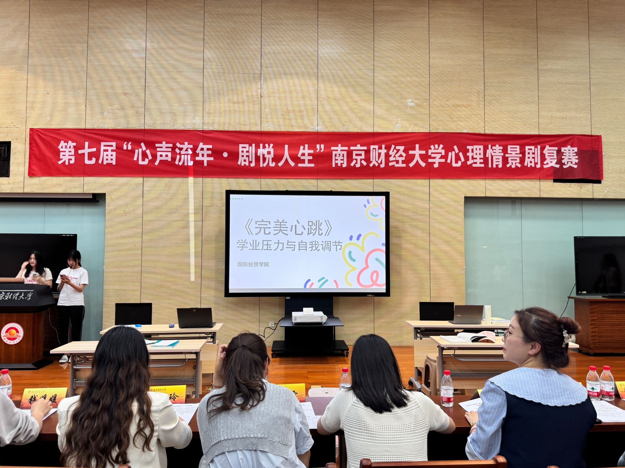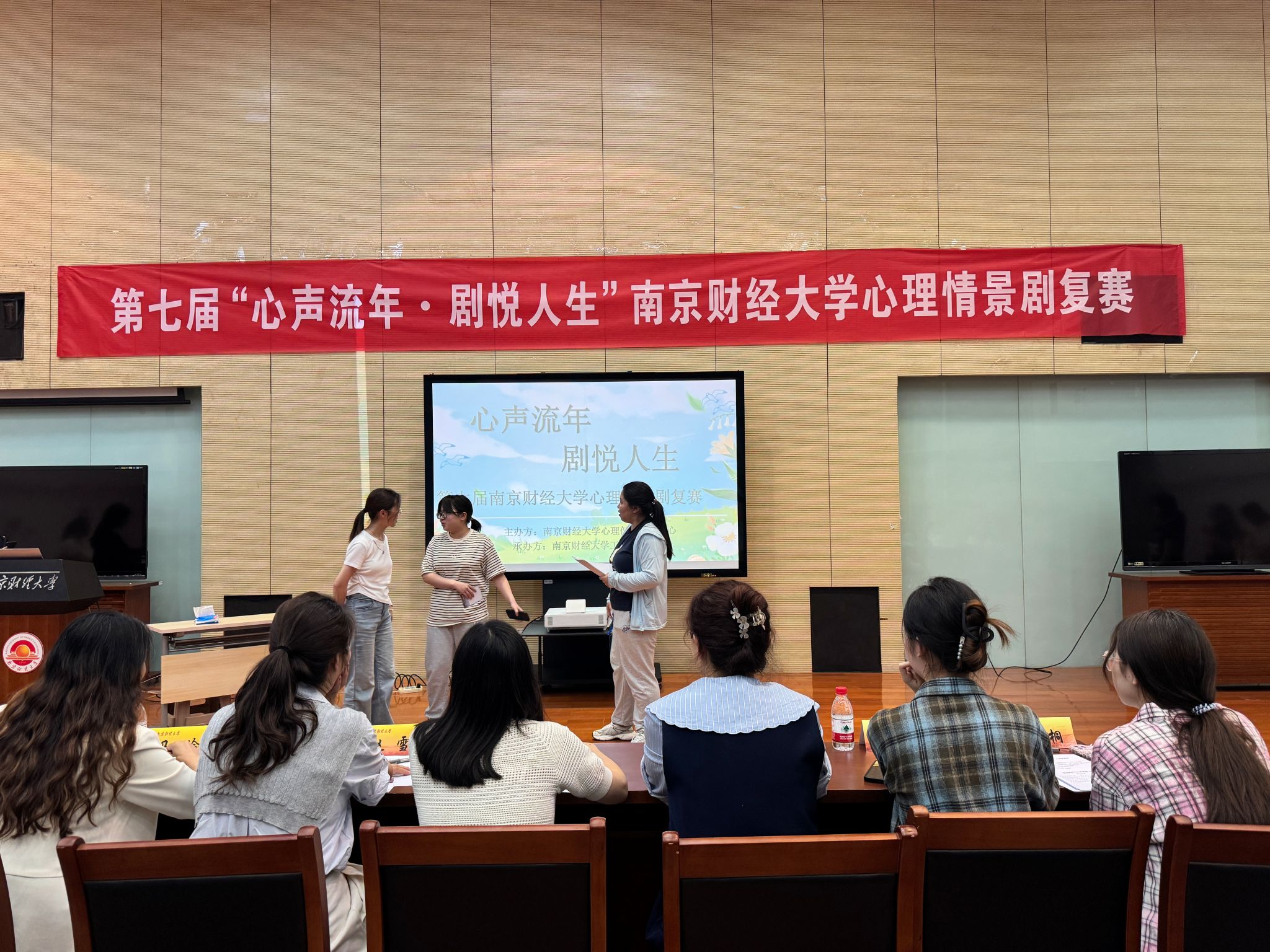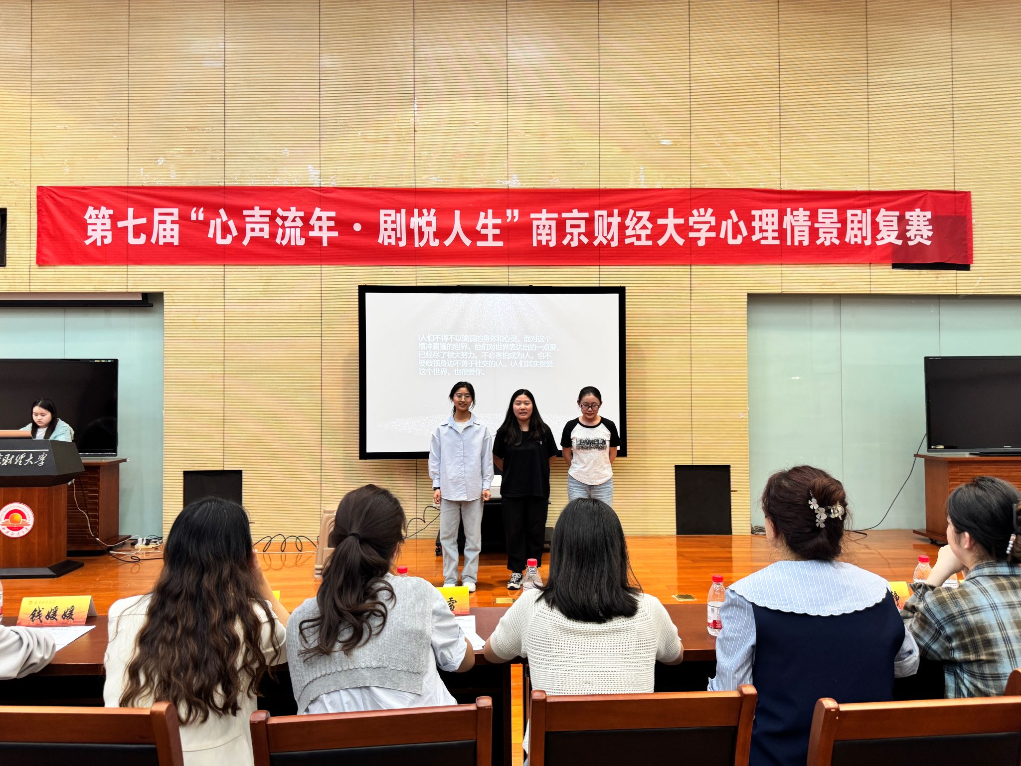 学生会轮值主席钱媛媛、应用数学学院团委学生副书记吴文静以及营销与物流管理学院分团委心理服务部副书记韩雨桐担任评委。