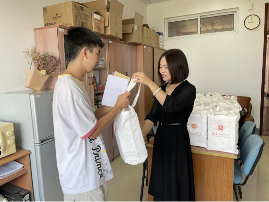 为家庭经济困难新生精心准备了“开学亮亮包”,新生辅导员赵菲老师记住了每位申请“绿色通道”的学生姓名,并悄悄邀请他们领取。包里装有励志校友赠送的书籍、新生辅导员的手抄诗、还有学院红色灯塔辅导员工作室送的台灯等生活必需品。