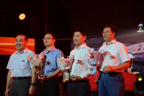 校长程永波为获得一等奖的学院颁奖(左二:杨林院长代表飞速体育直播官网