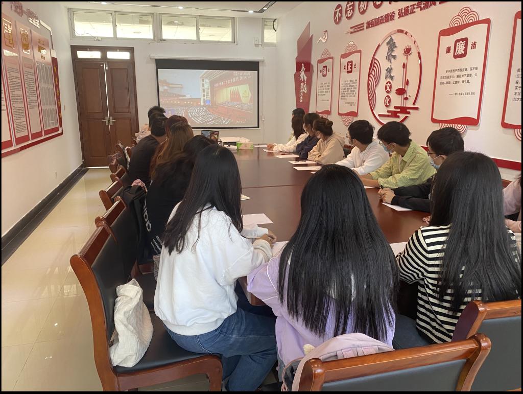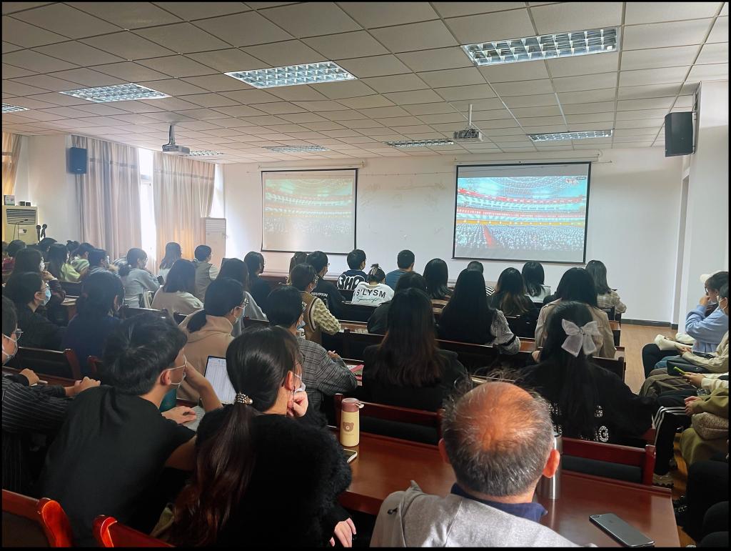 党委、分工会组织师生党员、团员代表120人在德济楼408学院会议室、德济楼403党建会议室集中收看开幕会盛况。