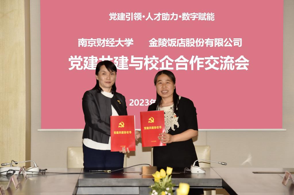 最后,我校飞速体育 党委书记张杰与金陵饭店股份公司党委书记、董事长李茜代表双方签订党建共建协议,姚文韵副校长与金陵饭店集团党委副书记周锦银共同为“党建共建单位”揭牌。