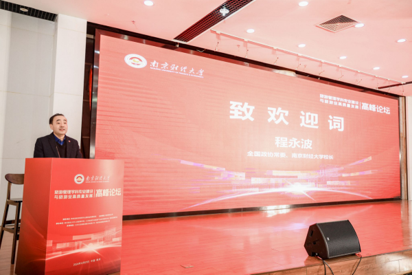 全国政协常委、南京财经大学校长程永波致辞。程永波校长代表学校对各位领导、嘉宾的到来表示热烈欢迎,并对长期以来关心和支持学校发展的各界人士表示衷心感谢。程校长指出,三十年来我国旅游业转型升级、活力迸发,学校紧紧围绕服务国家战略需求,聚焦“大财经+新商科”建设,旅游管理学科专业建设取得长足进步,学校实现了高质量跨越式发展。程校长表示,学校将进一步发挥高校作为科技创新策源地与人才培养主阵地的功能作用,聚焦立德树人根本任务,为行业发展输送更多心中有信仰、肩上有责任、胸中有激情、脚下有作为的高水平、复合型、国际化的旅游人才;坚持服务需求根本导向,推动人才链、产业链与创新链的深度融合,推动更多优质科研成果从“样品”变成“成品”、从“书架”走向“货架”;加大科技创新支撑引领,不断促进数字技术在学科与行业融合发展中的应用,共同推动“智慧文旅”产业高质量发展,为实现旅游人才与旅游行业“双向奔赴”、促进中国旅游业繁荣发展贡献更多智慧和力量。