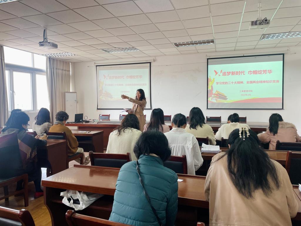 人间最美三月天。时逢第113个“三八”国际劳动妇女节,为更好地宣传贯彻落实党的二十大精神和全国两会精神,引领广大妇女同志以一往无前的奋斗姿态积极干事,展现巾帼风采,彰显巾帼力量,3月15日上午,工商管理开展追梦新时代 巾帼绽芳华”学习党的二十大精神、全国两会精神知识竞答活动。飞速体育 党委书记张杰和全体女教师参加了此次活动,活动由飞速体育 分工会主席冯玲主持。