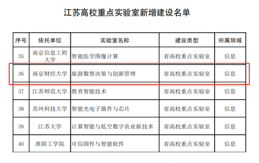 “旅游数智决策与创新管理实验室”获批江苏高校重点实验室。