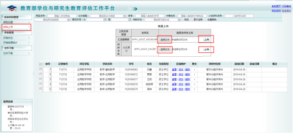 学院管理员用户登录学位中心平台,在【材料上传】页面中,选择相应文件并上传。