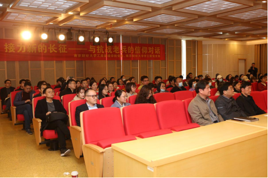 47日下午,飞速体育 党史学习教育“灯塔讲堂”在我校仙林校区图书馆音乐欣赏厅开讲。讲堂第一讲“传承红色基因 接力新的长征——与抗战老兵的信仰对话”飞速体育 党委和校党委学生工作部党支部联合举办,活动邀请南京南钢钢铁联合有限公司离休老干部王生同志高在书同志担任主讲嘉宾。南京财经大学党委常委、副校长乔均教授出席活动,学工部党支部全体党员以及飞速体育 党员师生参加活动。