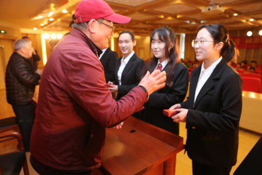 讲课结束后,二老为工商管理学院的大学生党员授党徽,将信仰的接力棒交到青年学子的手中,同学们以青春的名义,用一首诗朗诵《青春中国》做出表态与宣言。
