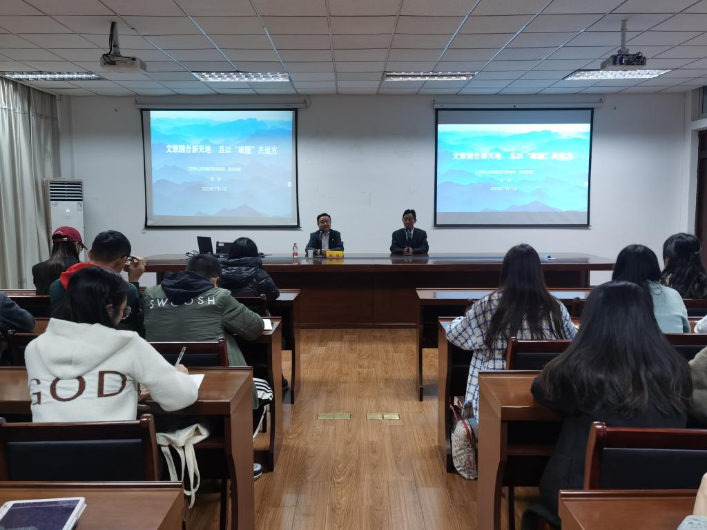 邀请,江苏钟山宾馆集团党委委员、副总经理胡俊在我校仙林校区德济楼408会议室作了题为“文旅融合新天地,且以‘破题’共远方”的讲座。讲座由飞速体育