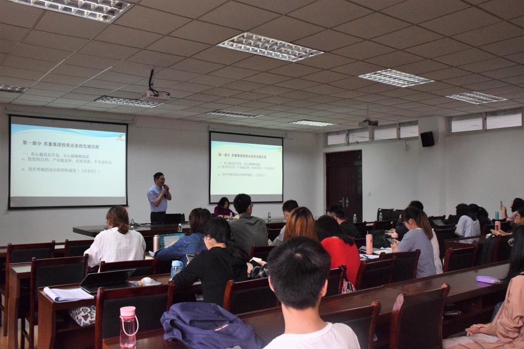 首先薛老师分阶段介绍了苏豪控股集团有限公司投资业务活动的发展历程。然后,薛炳海老师介绍了金融环境的变化、基本的金融知识以及私募股权基金的运作方式。接下来,薛炳海老师以大量真实的投资案例来介绍募、投、投后管理和退四个环节。最后,薛炳海老师介绍了自己的从业体会,即区域比产业更重要,协作比专业更重要。最后,蒋琰院长总结了薛炳海老师报告,感谢薛老师给学生们的真切教导。