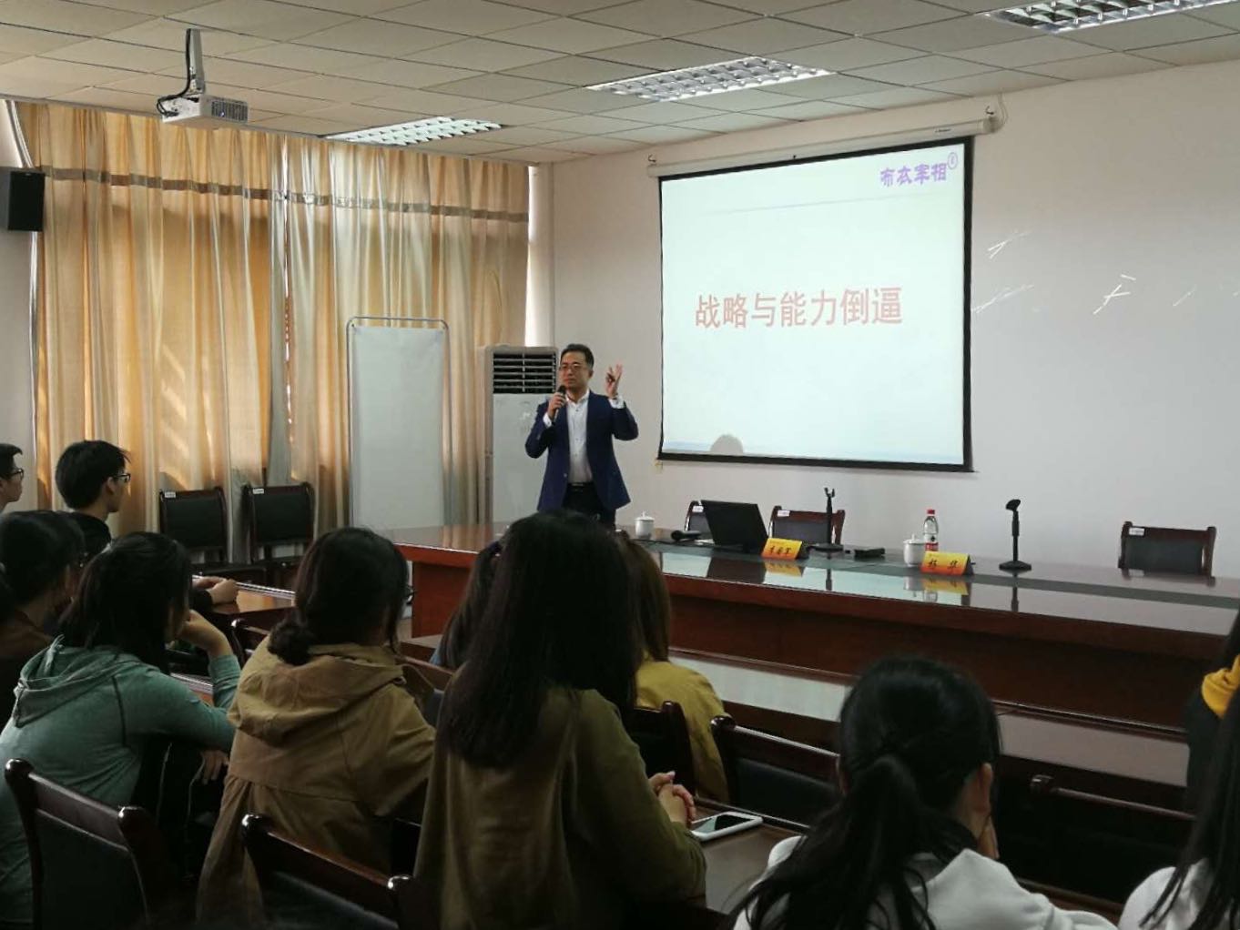 李国军董事长从“董事会和经营班子的博弈”、“何谓高端人才”、“能力倒逼思维”等三个方面对在场学生进行了实战指导和经验传授,从“企业需要高端人才”、“绩效管理是企业的发动机”、“复合型知识的营销”、“面试三问”等多角度引导学生要深刻理解专业知识与社会实践的重要性。随后,李董事长与在座同学分享了更多的经典真实案例,以学长身份告诫在场学生凡事必须要历经思考,提前谋划,全局考虑,唯有自觉培养能力倒逼思维,最终才能真正实现倒逼目标,积聚个人能力。最后,李董事长提出殷切期望,希望同学们在人格方面加强锤炼,增强情商,锻炼口才,博览群书;在处事方面提高系统思维能力,养成独立思考习惯;在职业发展方面能够结合专业及早谋划,通过活动参与提升综合技能,实现德、能、绩配位,勇于做未来企业精英和工商领袖,彰显个人风采,实现个人价值。